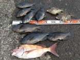 1月4日の釣果です。2名様で白甘鯛40cmオーバーが5、30cmオーバーが5と良型の白甘鯛が好釣です。他赤甘...