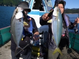 松崎沖水温 24℃水深 25~35m水色 普通シマアジ 0.9~2.6kg 2~6枚(2番手4枚✕2名)他に...