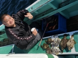 縦釣りとエサ釣りにてオオモンハタを2他、ホウボウ、カワハギ等々の釣果となりました。本日は遠方よりお越しいただ...