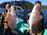 松崎沖水温 19℃水深 25~35m水色 普通シマアジ 1.5~1.6kg 0~4枚 船中4枚他にマダイ、ヘ...