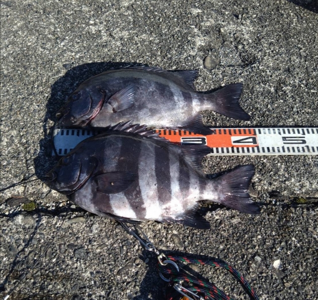 底物にてイシダイ39、40cmを各1匹釣り上げました!