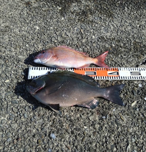 マダイ36、37cmを各1匹釣り上げました。