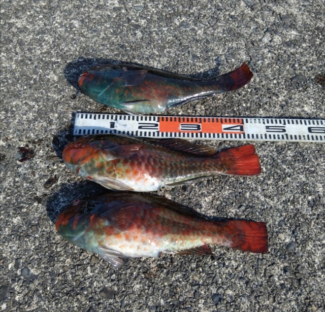 大石磯にて、ブダイ43~45cmを3匹釣り上げました!