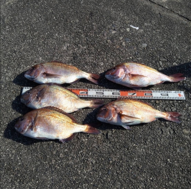 オナソにてマダイ51~57cmを5匹釣り上げました。
