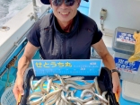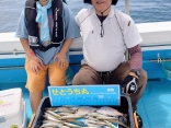 ジャンボスルメ 19匹(トップ様の釣果)水温26、0度海上おだやか断然、餌巻き!