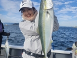 青物と太刀魚の二本立て!満員のお客様とゆく乗り合い便!メジロ15匹、太刀魚5匹でした。