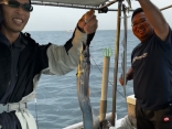 青物と太刀魚の二本立て!3名様とゆく乗り合い便!太刀魚は12匹、青物はメジロ7匹でした。