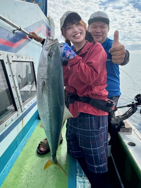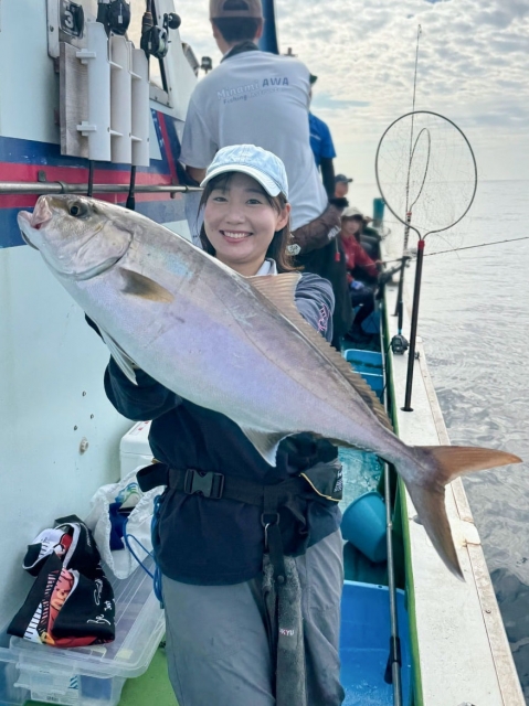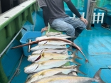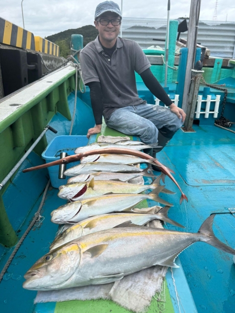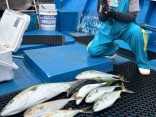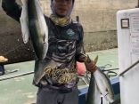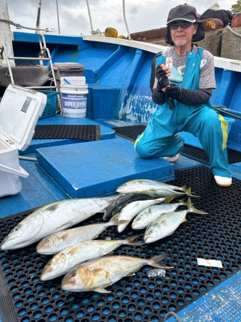 カンパチ50~70センチ×2匹、メジロ・鰤80~95センチ×15匹、サワラ65~70センチ×3匹、マダイ45センチ×1匹、カイワリ、アジ、イサキ、ガシラ等。