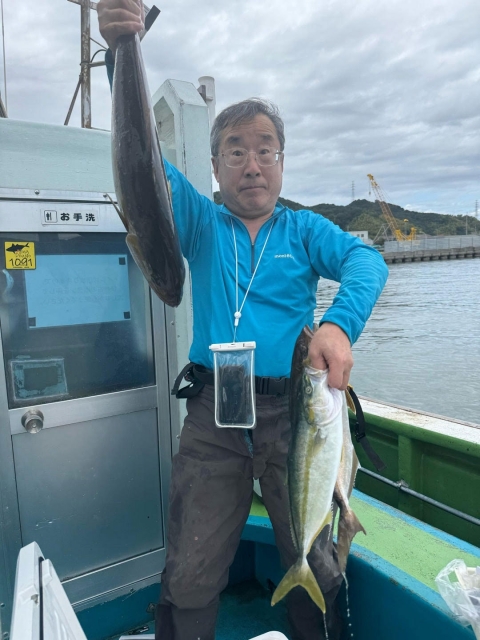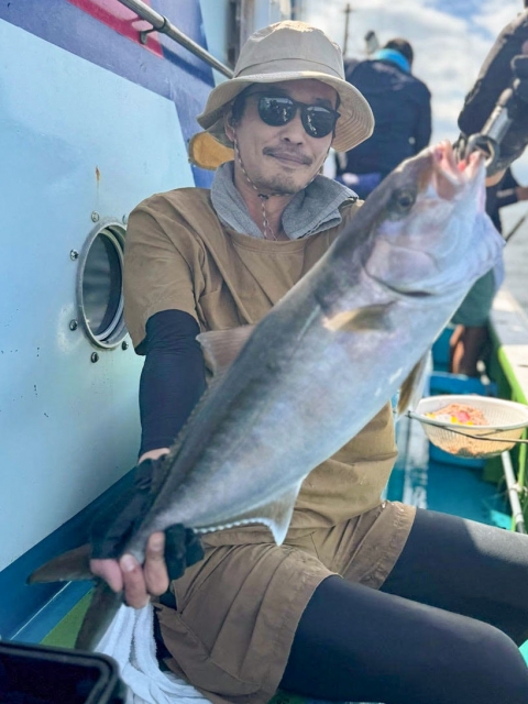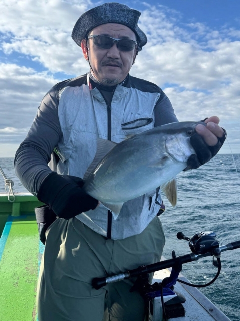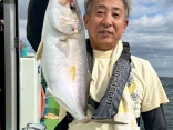 オオニベ 126cm(推定25kg)×1匹、カンパチ・シオ 42~62cm ×11匹、ブリ・メジロ 70~90cm ×5匹、マダイ 45~75cm ×11匹、ハマチ 50cm級 ×30本以上、サワラ55~75センチ×2匹、デカアジ、イサキ、ガシラ等