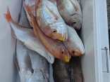 カンパチ57~65センチ×20匹、メジロ55~75センチ×48匹、マダイ45~50センチ×5匹、ヒラメ45センチ×1匹、ヒラスズキ55センチ×1匹、シオ(カンパチ)35~45センチ×7匹、ハマチ45センチ×7匹、オオモンハタ、マハタ、アカハタ、アカハタモドキ、タルミ、デカアジ、ガシラ等。