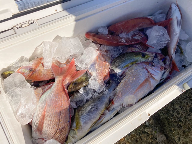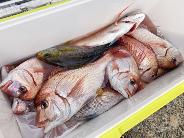 マダイ、イサキ、根魚、スルメイカ、ショウサイフグ