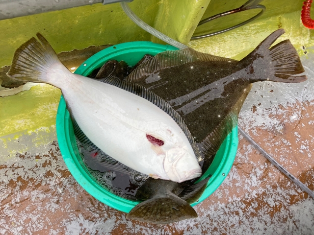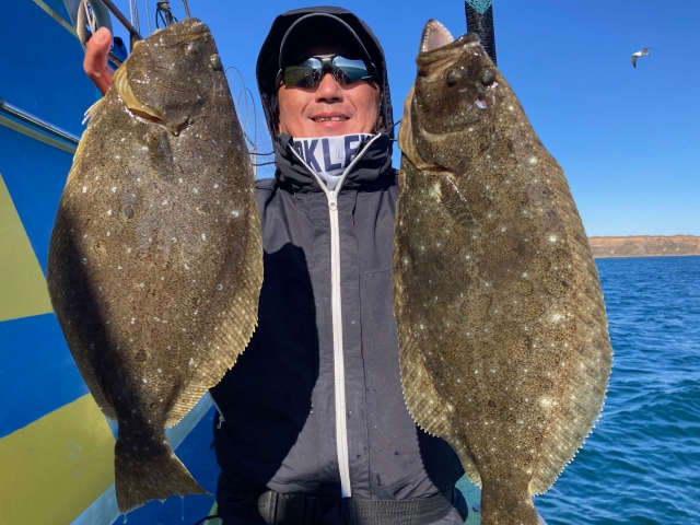 朝のうちは小ぶりなヒラメでしたが、中盤から2kg台か中心で絶好調でした!