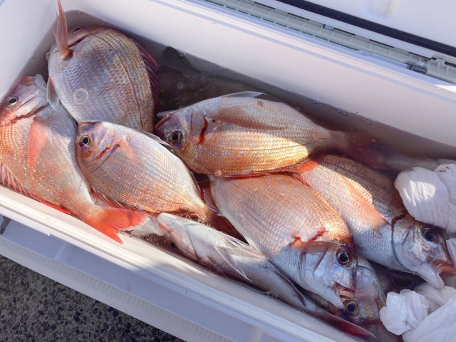 スルメイカ、ヤリイカ、マダイ、カワハギ