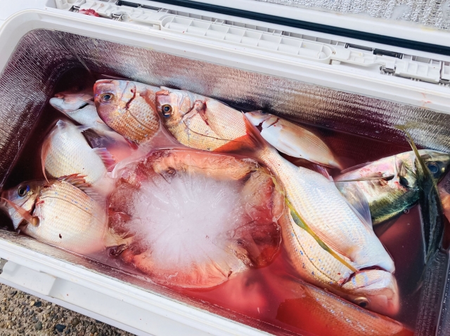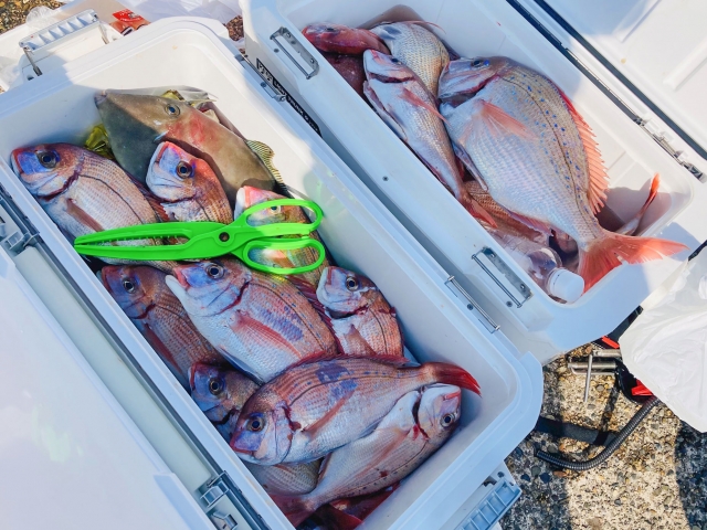 ベテランさんも良型ハナダイの多点掛けも多数あってクーラーボックスいっばいにしてました!