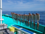 勝浦沖140~180mの行程35分の漁場にて本日は朝のひと流しはノリ上々で9杯捕る方もありました。その後は1杯ずつ上がる程度になり終日バラシ多く苦戦もしました。海上のウネリもとれてきましたので今後に期待します。乗合は常時8人限定で釣座間隔4m確保し、おまつり軽減で一人より出船致しますのでお気軽に御予約下さいませ。集合は川津港市場付近に4時20分になりますのでお気をつけてお越しくださいね。救命胴衣の着用義務化により必ずご用意お願いいたします。