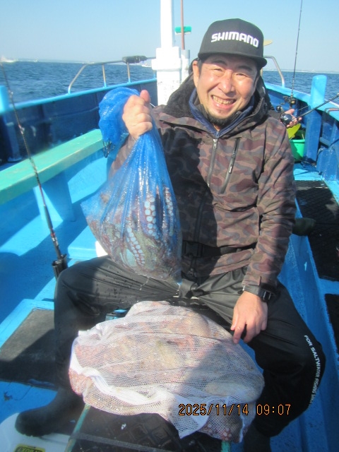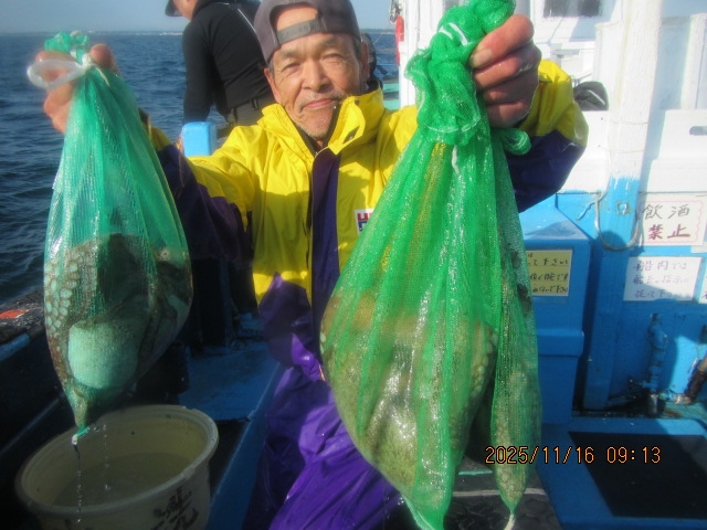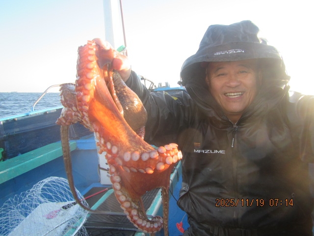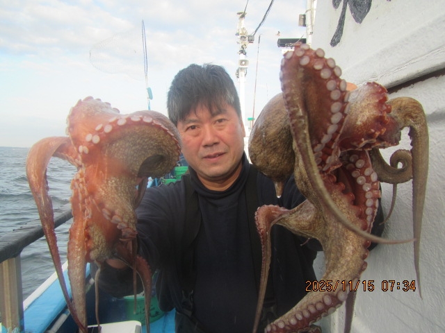 釣人 上手く 2.8kg 2.6kg 2.5kgの 大ダコ初め釣る