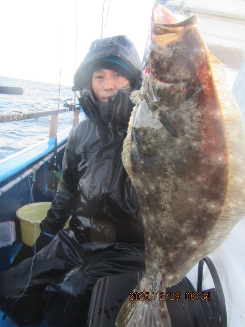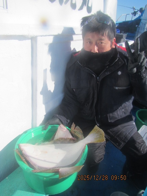 4.2kg 3.2kg 3.0kgの大ヒラメ 初め 玉網に 踊る;