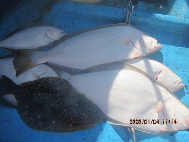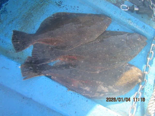 4.6kg 4.0kg 3.8kg 3.2kg 3.0kgの大ヒラメ 初め釣る