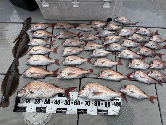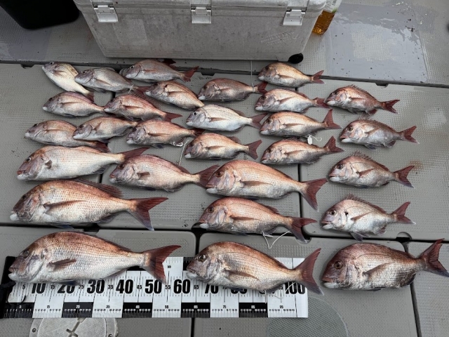 今日は、1・2号共に50サイズ頭に30枚・25枚の釣果です。
