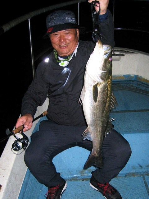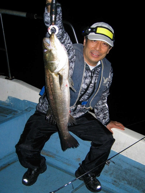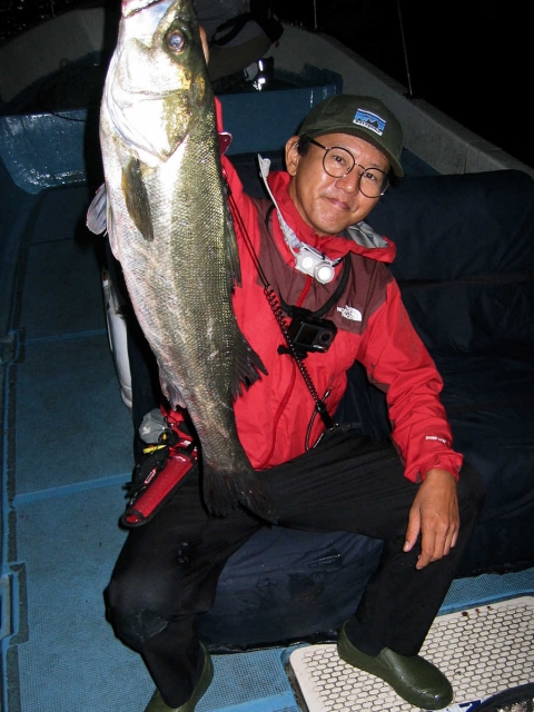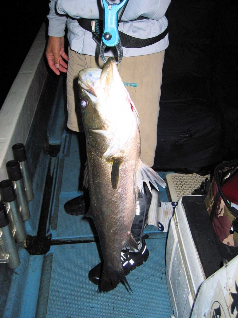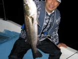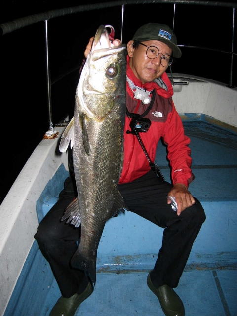 で、移動を繰り返し、1匹目(57cm級)・2匹目(57cm級)をキャッチしましたが、その魚がセイゴ級のサイズに見えてしまう私。ムムム・・・オカシイ???