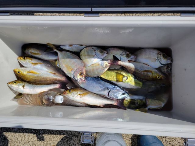 カイワリ、イサキ、ヒラソウダ、イトヨリ、マダイ等が混じったりして楽しめてます。