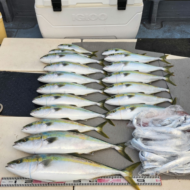 チャーター便で、朝から強風予報だったのでお客様とご相談をさせて頂き大幅に出船時間を遅らせての青物&太刀魚狙いのショート便で行かせて頂きました。