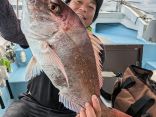 本日はゲストとして女性アングラーが乗船されました。鯛ラバでかなりの数とデカ鯛を釣られています。
