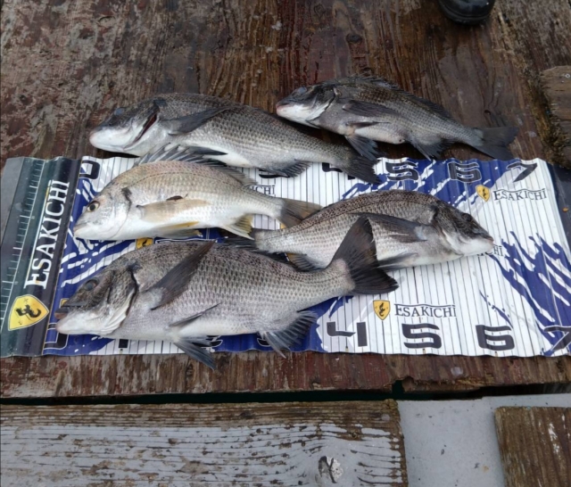 クロダイ40~47cmを4匹、キビレ38cm1匹釣り上げました!