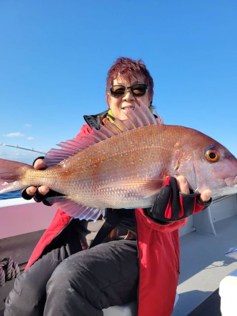 今日は一投目からマダイ、オナガが当たってきましたよ!
