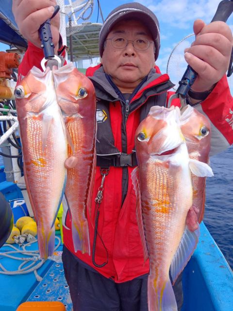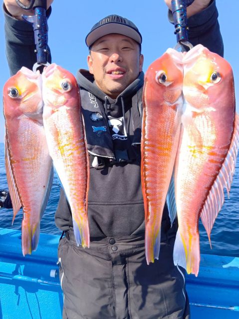 大鯛3.8kg、1.4kg、1.3kg、1.3kg、1.0kgヒット!