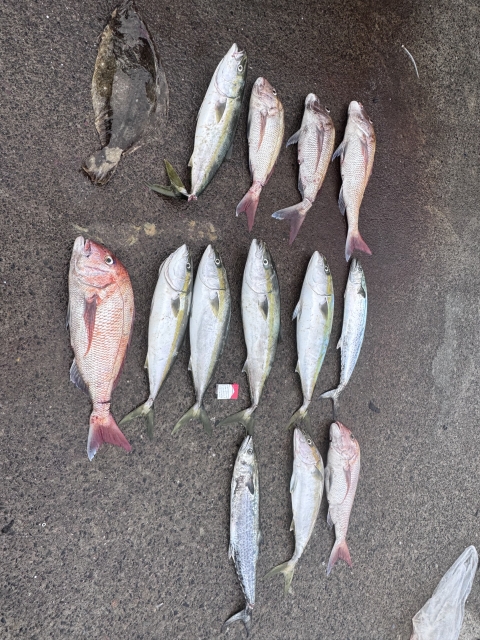 シロイカ、アジ、マダイ、ヒラメ、ハマチ、ヒラマサ