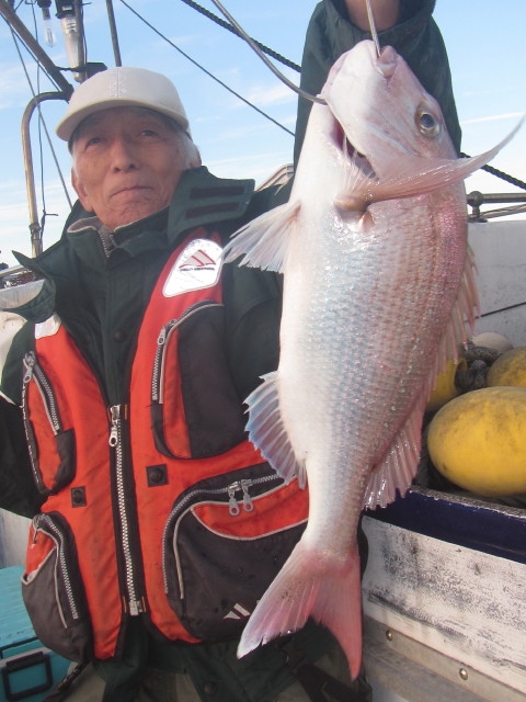 真鯛35cm~55cm21尾(お刺身サイズ40cm以上12尾)、サワラ80cm、イサキ30cm前後4尾、チ鯛・レンコ鯛30cm前後5尾、他に馬面ハギ、白サバフグなど。